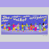 “She walked everywhere highlights the many women walking for change. People make a place, and this artwork celebrates the women of Redbridge and East London, some of whom I was lucky enough to grow up with and who make up the many communities of Redbridge today.
